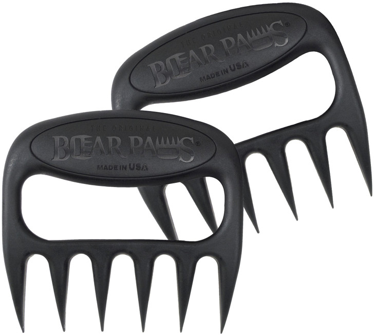 Bear Paws are the original, must-have BBQ accessory. A longtime favorite of BBQ experts across the nation, Bear Paws are specially designed for lifting and shredding meat. Channel your inner grizzly with the only meat shredding tool that fits your hands perfectly, acting as an extension of your arms and allowing you to shred meat without getting burned or melting your tools. The super-sharp, meat-shredding “claws” are strategically spaced so meat won’t get stuck. Bear Paws offer a much better way to shred meat than the traditional knife and fork. Thanks to super-strong nylon construction, which is much harder and stronger than plastic, Bear Paws are heat-resistant up to 475 degrees, so you never have to worry about them melting from the heat of your meat. Bear Paws are BPA-free and FDA approved for safe food handling. Each Paw is made of a single piece of hard nylon, so there aren’t tiny pieces to disassemble and wash by hand. In fact, Bear Paws are dishwasher safe on the top rack, making for the easiest cleanup ever. You’ll never run out of uses for your Bear Paws. Originally designed as the perfect tool for pulling pork, Bear Paws are also ideal for lifting and shredding chicken, brisket, beef, pork, turkey, or whatever else suits your fancy on the grill. They’re great for tossing salads and even handy as turkey lifters. Bear Paws are the best accessory for your grill, smoker, or kitchen, and they make great gifts for BBQ fanatics. Experience the best with Bear Paws. We’ve been named The Best BBQ Tool by the National BBQ Association, and have been featured on TV on BBQ Pitmasters, America’s Test Kitchen, and Guy Fieri’s Diner’s, Drive-Ins, and Dives. Bear Paws are 100% made in the USA and we proudly sponsor BBQ competitions and events across the country. For a reputation that can’t be beaten, go with the REAL Bear Paws.
