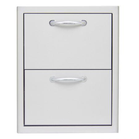 This Blaze Double Access Drawer features clean design elements and quality construction using commercial grade 304 stainless steel that can stand up to the outdoor elements. Accented with curved handles and a unique, completely rounded bevel design, this drawer provides that quality touch to your outdoor kitchen or BBQ island. Blaze storage drawers are the perfect outdoor storage solution!