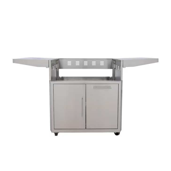 This Blaze stainless steel grill cart is specifically designed to house the Blaze 32-inch gas grill. The stainless steel construction ensures long-lasting durability for years of outdoor use and the four heavy duty caster wheels allow you to easily relocate the grill whenever necessary. The two stainless steel side shelves keep your BBQ tools at hand and provide a convenient work area while you cook. The Blaze grill cart also features a roll out propane tank holder and a cabinet with a shelf below the grill where you can store your propane tank, grill cover and BBQ accessories. The doors also have soft close hinges to prevent them from slamming shut. Designed for use with 32-inch Blaze LTE PRO. Not for use with Blaze LTE & LTE+ grills.