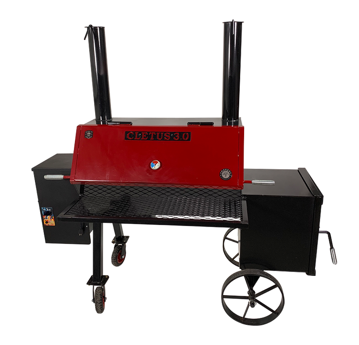 Each Cletus™ Dual Purpose Pellet & Off-set Smoker is handcrafted in the USA by Expert BBQ Pitmasters and Pit Builders using heavy-gauge US steel construction and comes equipped with the latest electronic BBQ tech for a masterful blend of craftsmanship, experience, science, and red-blooded American Pride.