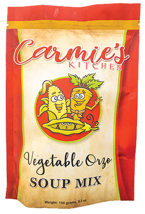 Our vegetable soup mix is packed with all sorts of yummy veggies. Just add water and a can of tomatoes to this soup mix. Vegetable orzo soup mix is all natural, contains no msg, and no preservatives. You can even add beef to make this soup even more amazing.