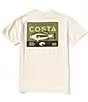 - “Costa” logo, a bass graphic and other verbiage screen printed on the back