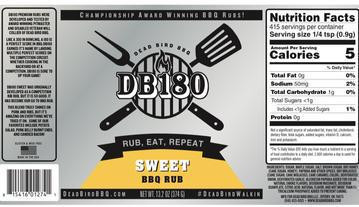 DB180 Sweet was originally developed as a competition rib rub, but is so good, it has become our go to rub anytime we want to amp up our sweetness. This blend truly shines on pork and ribs, but it's amazing on a variety of foods.Some of our favorites include potato salad, pork belly burnt ends, and candied bacon!