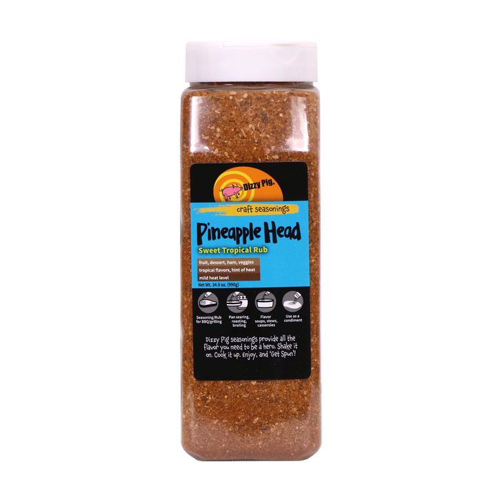 Inspired by a grilled pineapple recipe that leaned heavily on cloves and cinnamon, we whipped up this perfectly sweet pineapple rub to complement the more tropical side of life. With a little more heat and savory flavor than the original recipe, our sweet tropical rub becomes the ideal complement to anything sunshine-y and seabreeze-y. Think bacon, butternut squash, sweet potatoes and ham. Not to mention fruit salad, pineapple and grilled peaches. Originally intended for grilling fruit, cooks devoted to Dizzy Pig are finding more and more uses as the days go by. Kettle corn and seafood, sausage and vanilla ice cream, even. There’s no limit to the spicy goodness this rub imparts to all the finer things in life. Order up a batch for yourself and find out why our customers rave about this rub, and what makes it one of our most popular blends today.