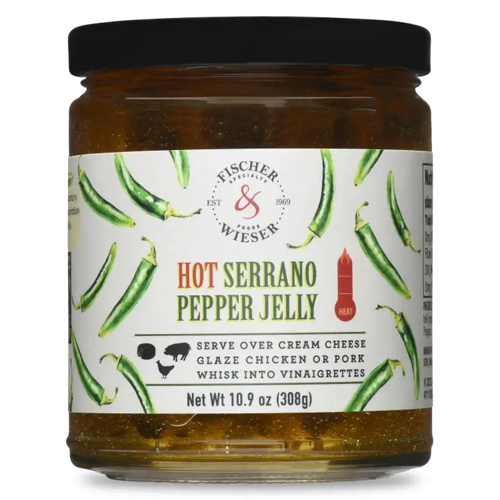 Growing fresh fruit on our farm has been an ongoing endeavor for over 85 years, and is our inspiration for more than 150 unique flavor combinations. Serrano Pepper Jelly will brighten up a charcuterie and cheese tray, and poured over cream cheese it makes a great party appetizer. Created in our kitchens in Fredericksburg, Texas - we make great taste easy!