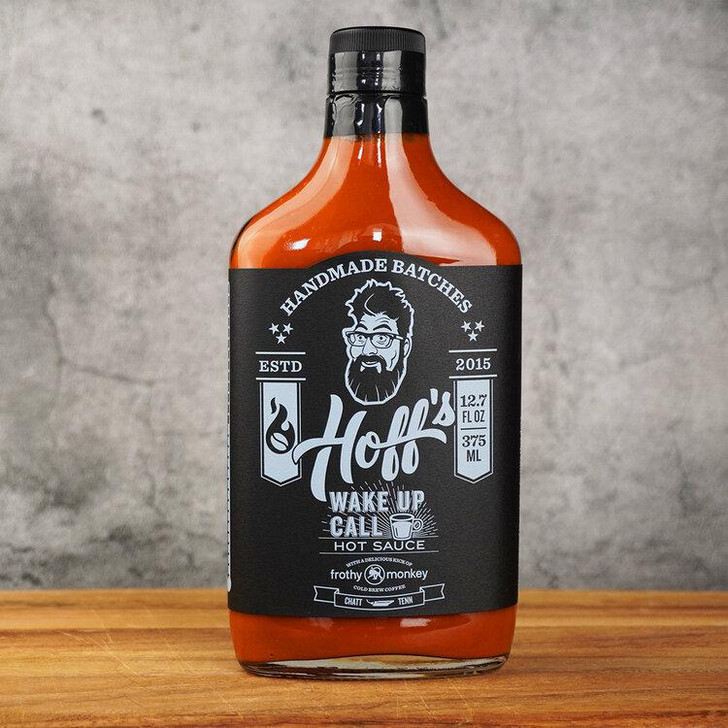 Our most complex hot sauce is handcrafted with fresh chilis, gourmet spices, and cold brew coffee to create an incredibly savory hot sauce. This fan favorite is also our largest hot sauce with 12 ounces of deliciousness just waiting to be poured over your next meal. If you're in the market for a savory sauce with the perfect balance of heat and sweet, it's time to try Hoff's Wake Up Call.