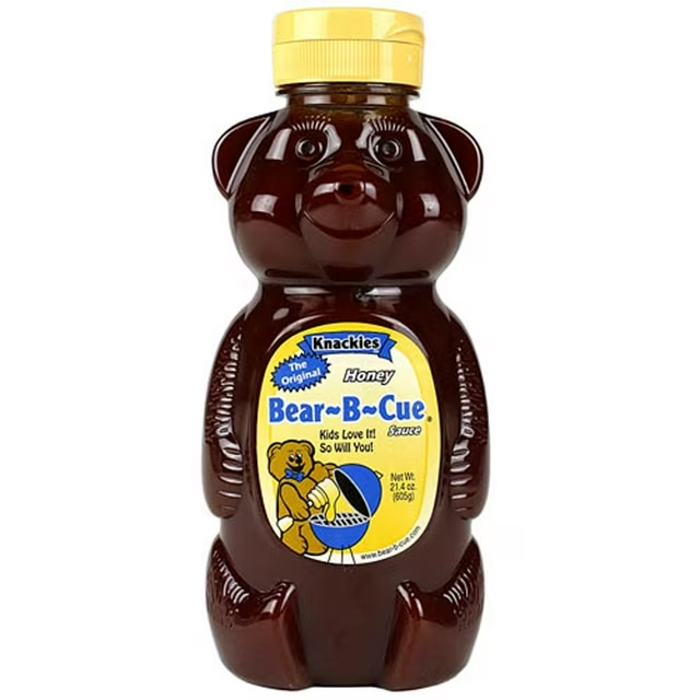Knackies comes from a small community in Inman, Kansas. Knackies started out as a small commercial bakery in 1990 and later turned into a catering service on the side. While opening up a small eatery with dine-in and carry-out services, Steve worked on developing his House BBQ sauce. The Original BBQ sauce is a mild sauce that goes well with almost everything. It has been used on all types of meats, mashed potatoes, baked beans, and even meatloaf. This BBQ sauce is Mild so it is not spicy for the kids and will become one of their favorites. These are bottled in easily accessible "Bear" bottles with a flip-top lid thus the name Bear-B-Que on the bottle.