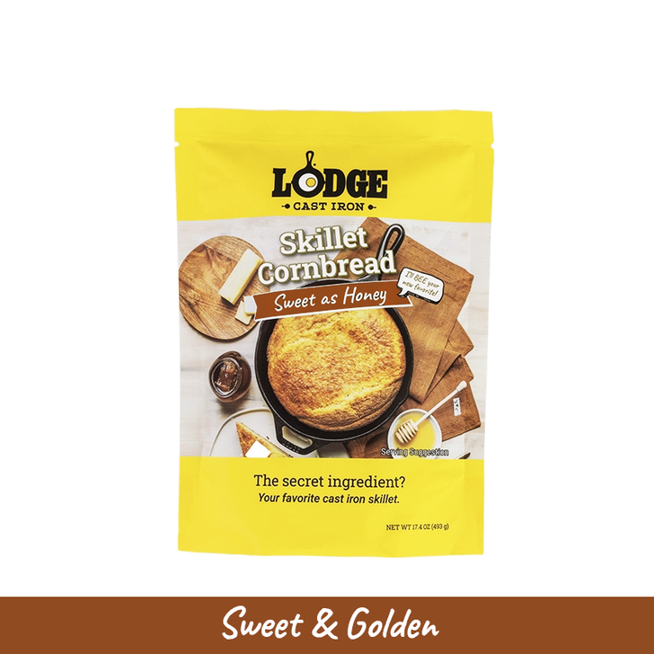 The secret to great cornbread? Cast iron! At Lodge, we know nothing adds a better crust or crunch to your cornbread than a hot cast iron pan. Our new Skillet Cornbread Mixes are the perfect pairing to your favorite skillet, wedge pan, cornstick pan, or muffin pan. Made with quality ingredients, each flavor helps you serve delicious cornbread at any meal or snack, simply and quickly—no elbow grease needed. Sweet As Honey takes our mouth-watering cornbread and adds bee-autiful sweetness. Serve it with butter (naturally), or double down on the honey with a drizzle of the good stuff.