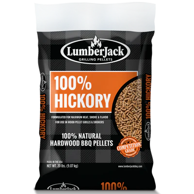 LumberJack hickory pellets are perhaps the most widely used pellet, and for good reason. Our hickory grilling pellets provide a unique smoke flavor and compliment almost any food you pair with them. These pellets naturally enhance beef, pork, seafood, poultry, or wild game.