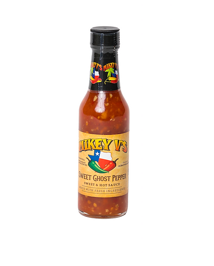 Winner, 2nd place in Austin's Hot Sauce Festival 2013, Mikey V's Sweet Ghost Pepper Sauce, is sure to heat up those taste buds! We use the same base ingredients as Mikey V's Zing, adding the finest quality, 100% Bhut Jolokia- Ghost Pepper, grown right here in the USA. Pairings: over softened cream cheese as an appetizer; ribs; chicken; burgers; tacos; seafood; pork; wings; oriental food.
