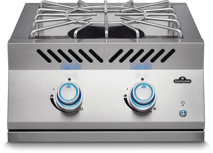 The 18-inch, two-stage, Power Burner for the Built-in 700 Series is a chef's dream. Ultimate temperature control with a high and low setting which makes cooking huge meals, like a seafood boil, or small items, like a fresh sauce, a total breeze. This power burner is ideal for The NIGHT LIGHT™ Control Knobs with SafetyGlow that makes grilling after dark a breeze. Never accidentally leave a burner on, the lights change from cool blue to red when on. The no-fail, battery-free ignition lights immediately with a unique jet of flame. The two-piece stainless steel cooking grids hold large pots and the removable centre ring perfectly nests a wok pan. Include additional and convenient cooking area to your custom outdoor kitchen by including this drop-in power burner. The power supply kit N370-1016-SER is required for all Built-in 700 Series burners being used in an application without a Built-in 700 Series Built-in Grill in order to supply power for the NIGHT LIGHT™ control knobs.