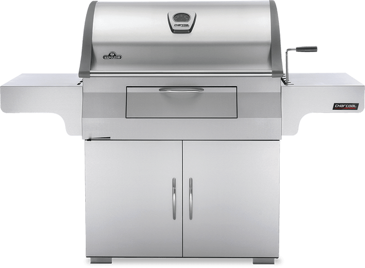 The Napoleon Charcoal Professional Grill takes traditional charcoal grilling to new heights with the stability and features of cart model gas grilling in a huge charcoal BBQ. Durable and beautiful stainless steel construction makes this charcoal grill ideal for every environment. You can add charcoal on the fly with the front loading charcoal door. The adjustable charcoal bed and sliding air vents make heat management a breeze. Lower the charcoal bed for easy roasting, or raise it up for high heat searing. You'll know it's a Napoleon with the iconic WAVE™ cooking grids for those distinctive sear marks. The most unique feature of the Charcoal Professional has to be the charcoal powered rotisserie burner. The slide-out ash and drip pan keeps cleanup simple. Experience the height of professional charcoal grilling with the Napoleon stainless steel Charcoal Professional Grill.