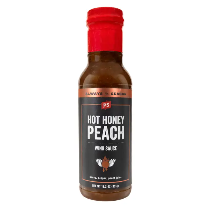 Always in Season Don’t get in the pits with other wing sauces, this spicy honey and peach concoction is sure to have a peach of your heart. Sweet, fresh peach juice is combined with honey, spices and a kick of pepper for the perfect bite. You'll be reaching for your drink with one hand while giving a thumbs-up with the other. Made for Wings, But Great For: Thighs Pulled Pork Ribs Dipping Sauce