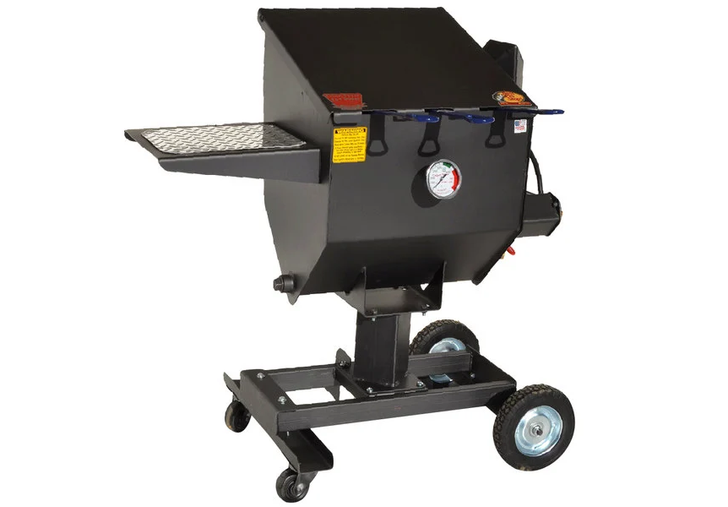 This Triple Basket Fryer by R&V Works is the perfect fryer for backyard fish fry or to serve french fries, onion rings, appetizers to go along with your BBQ. This fryer is also capable of cooking for your large parties or commercial events. Combining approximately 8 1/2 Gallons of oil with 90,000 BTU of heat potential, this portable deep fryer has the power to keep up with the demand of your patio cookouts, tailgating parties and medium to large fish fries of 65 to 70 people per hour. Also being a multi Basket Fryer, you are able to fry different foods at the same time. This fryer is also perfect to fry up to two 14 lb. Turkeys. All of R&V Works fryer works with the Burner Flue Hovering in the cooking vat, positioned so that the excess breading and/or batter will fall to the bottom of the fryer where the oil is cooler. This prevents the oil from being scorched by the sediments laying directly in the heating zone which will very quickly ruin the quality of your cooking oil. This results in a 70% reduction in oil usage when compared to other deep frying systems. The Fryer also features a built in 2 1/2″ thermometer making it easy to monitor the oils temperature. The fryer features 8″ solid rubber wheels and a front axle with castors making this fryer easy to move. Made from solid carbon steel with a high temp charcoal gray finish, this fryer will withstand many years of use. This fryer is set up for liquid propane and is for outdoor use only!