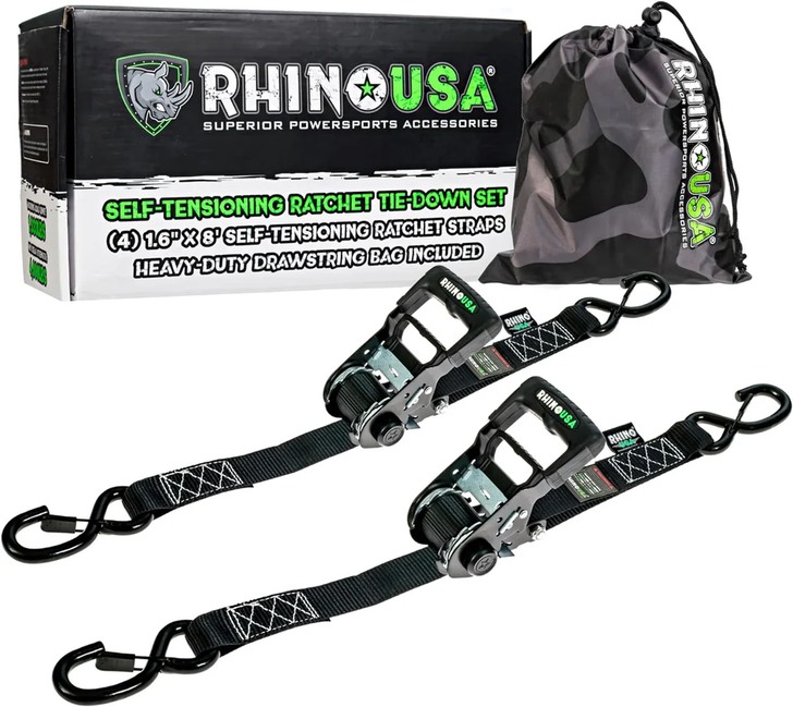 Introducing Rhino USA Self-Tensioning Ratchet Straps – the game-changer in cargo securing. Redefining ease and reliability, our innovative straps feature self-tensioning technology that automatically maintains a rock-solid grip on your cargo throughout the journey. With a whopping 4,000lbs break strength, these straps are engineered for durability, built with weather-resistant materials, and robust hardware to withstand the toughest conditions and heaviest loads.