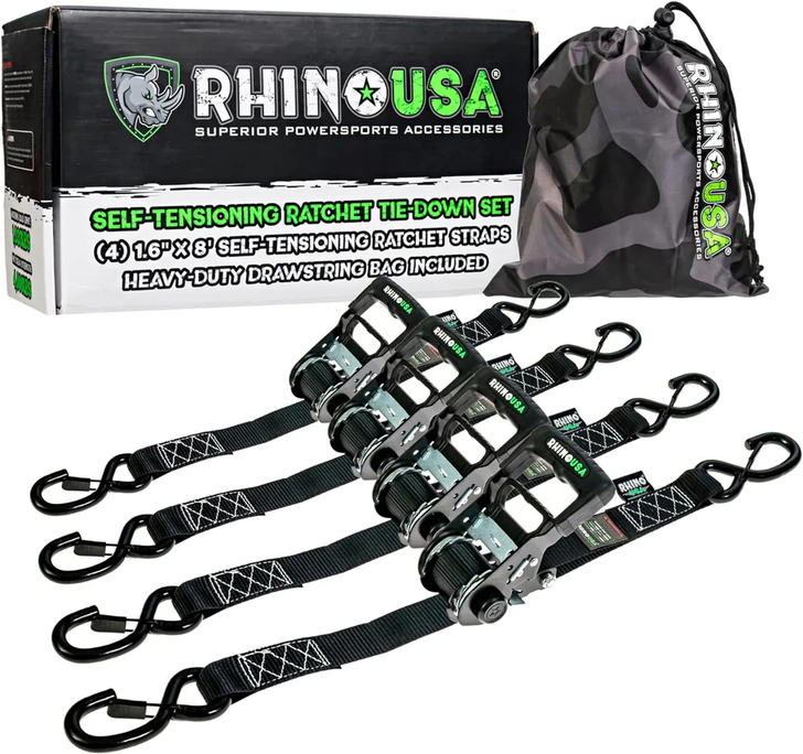 Introducing Rhino USA Self-Tensioning Ratchet Straps – the game-changer in cargo securing. Redefining ease and reliability, our innovative straps feature self-tensioning technology that automatically maintains a rock-solid grip on your cargo throughout the journey. With a whopping 4,000lbs break strength, these straps are engineered for durability, built with weather-resistant materials, and robust hardware to withstand the toughest conditions and heaviest loads.
