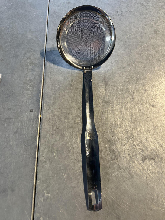 The skimmer is made from 304 stainless steel with ergonomic handle for fast, easy and complete separation of the floating fat, grease, foam or scum from your favorite broths, soups and stews.