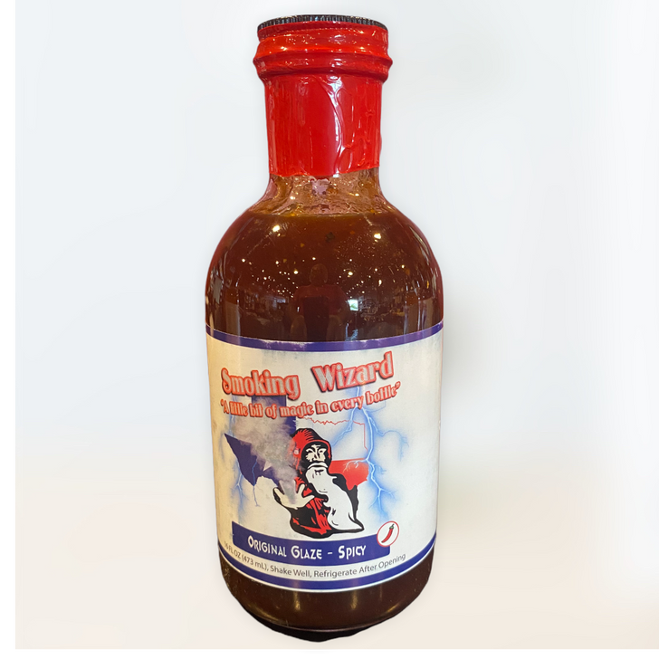 The "spicy Wizard" is back, and just as good as ever. Don't let the name fool you though, Smoking Wizard Original Glaze - Spicy has just a touch of spice and a little less sweetness to give you a less sweeter glaze for your meats.