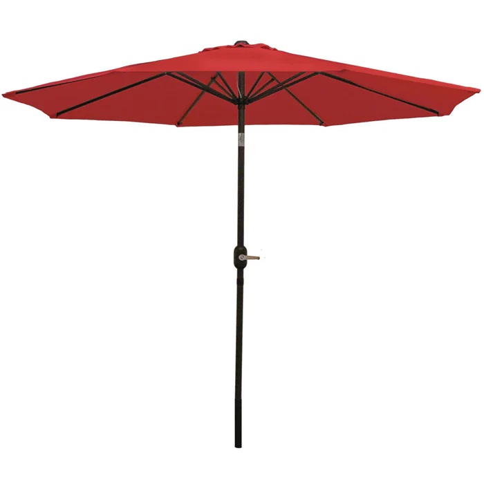 Stay cool in the shade with this patio table umbrella. The beautiful patio umbrella has a large enough canopy to shade tables that are 42-54". The canopy is made from durable 100% polyester to withstand outdoor conditions and provide lasting protection from the sun. A convenient crank handle allows for easy opening and closing. The push-button tilt makes adjusting the angle of the canopy simple for the perfect amount of shade. The patio market umbrella has a vented top for additional stability in the wind and air circulation. Always use this patio umbrella with an umbrella base (not included) and a patio table (not included).