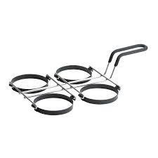 The Tablecraft 1240 4" non-stick egg ring four ring mold with handle will help you achieve more consistent results with less waste! You'll use your grill space more efficiently and also make perfect individual portions for egg sandwiches or omelets, and keep fried eggs from running all over your grill. The Tablecraft 1240 egg ring set cooks up to four perfectly round fried eggs at a time!