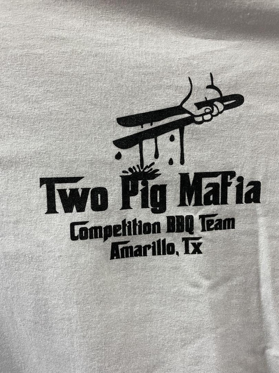 Two Pig Mafia's epic logo on a soft and breathable White shirt. Made with 50% Cotton and 50% Polyester, we recommend washing in cold water and tumble dry.