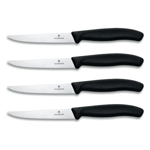 An elegant addition to any table setting, the 4.5" Victorinox Swiss Classic Steak Knife slices without flattening or ripping your meat. Crafted with a comfortable handle, superior weight and balance, and a razor sharp edge that rarely requires re-sharpening.