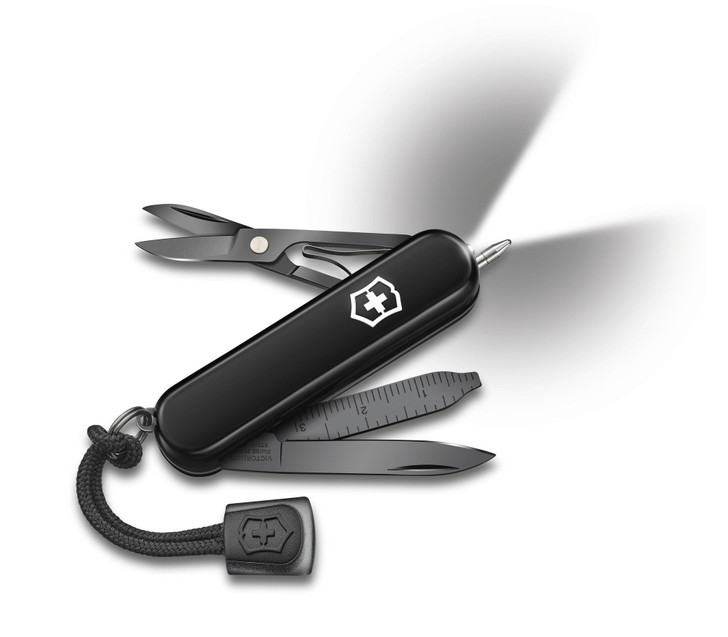 We’ve given our iconic pocket knife a glossy makeover, raising its style game to new heights: meet the lustrous Signature Lite Onyx Black. Thanks to a special polispectral process, the monochrome black finish not only looks timelessly classy, it’s extra durable, too. This knife includes an LED light and a handy ballpoint pen for quick notes and truly signature multifunctionality.